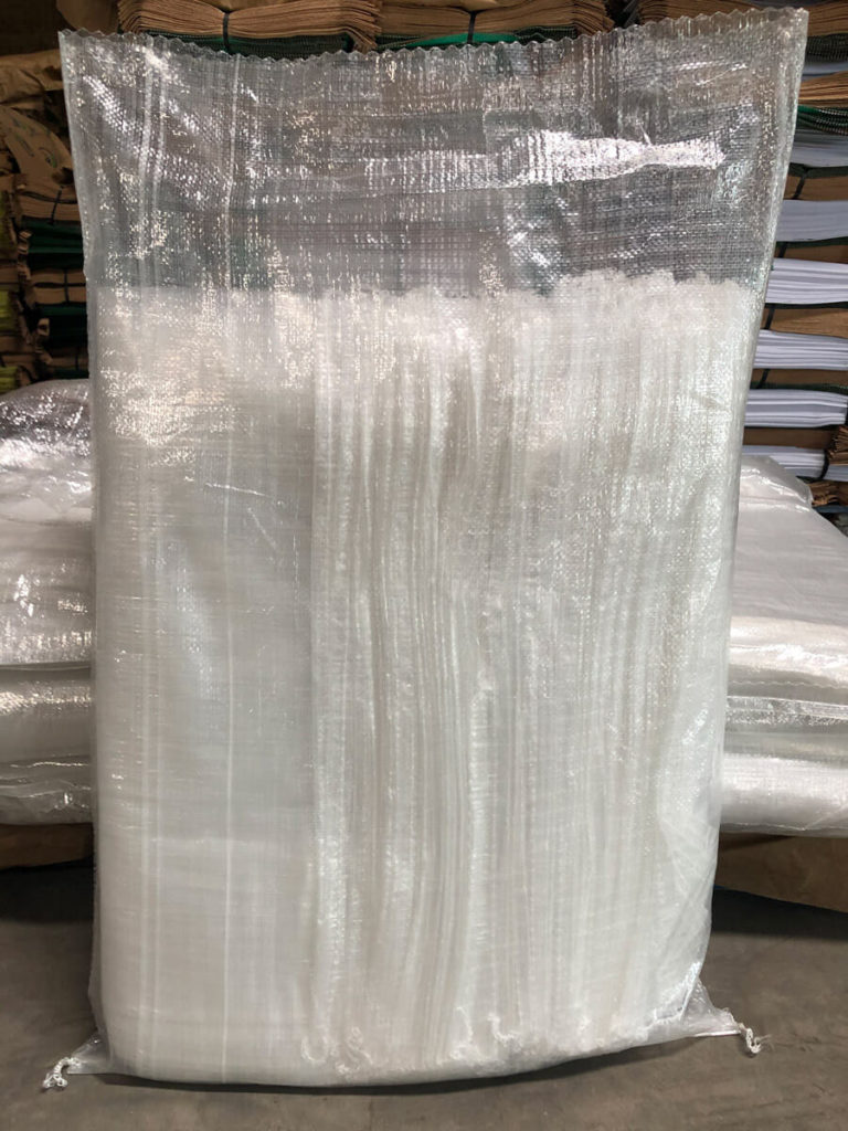 Os sacos de ráfia são feitos de polipropileno, podendo ter tramas bastante firmes para acondicionar produtos com granulação fina, como a farinha de trigo, açúcar, sal, arroz, entre outros.