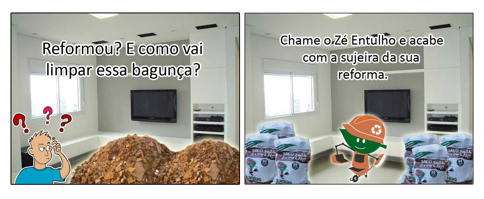 O Zé Entulho® é um saco de ráfia (polipropileno) reforçado medindo 55×80 centímetros com capacidade para 60 litros, na medida ideal para o ensacamento e transporte dos resíduos da sua reforma. E por se tratar de um saco novo, não exala odores ou deixa sujeira.